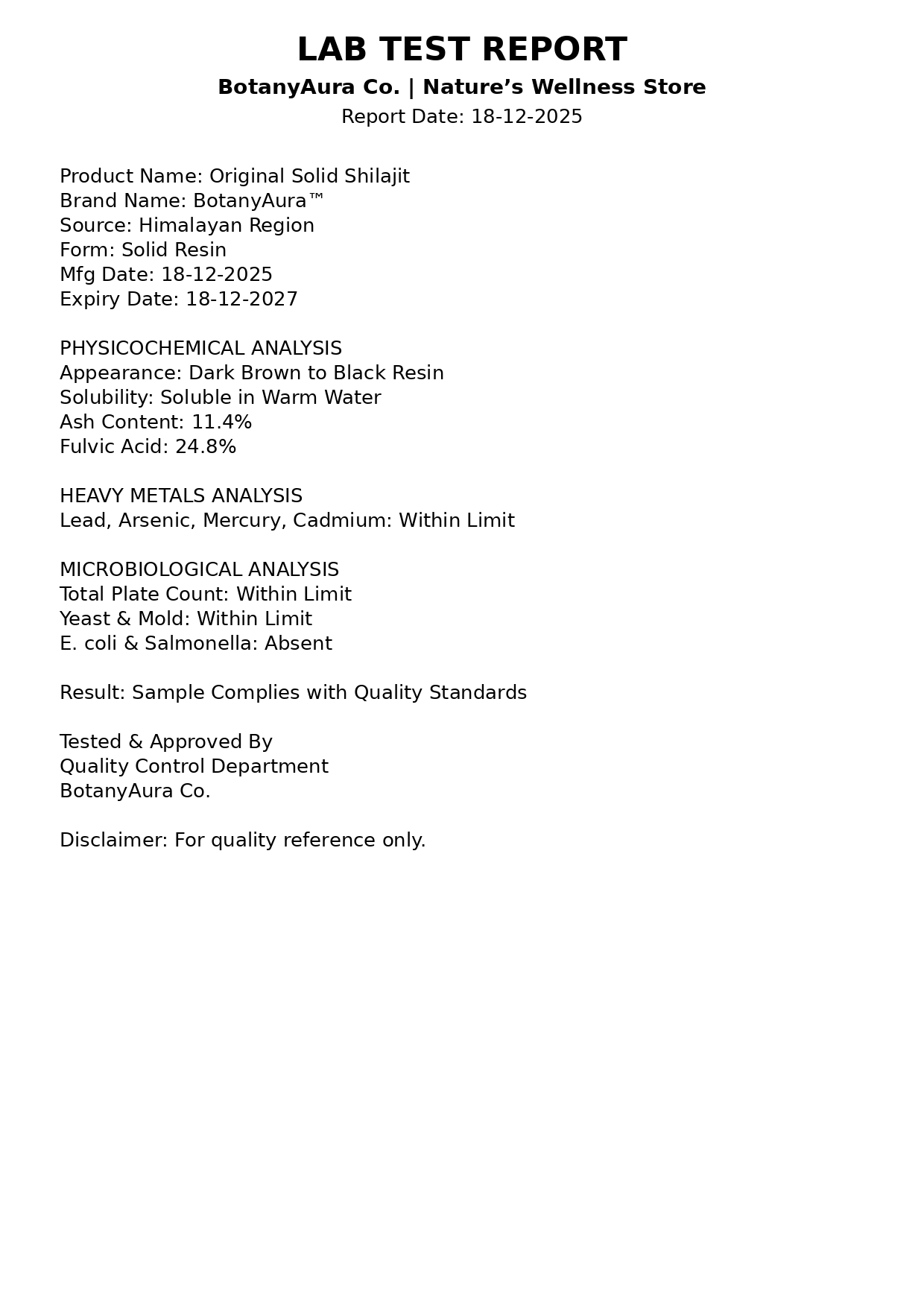 This Shilajit is supplied in its raw and natural resin form, suitable for bulk buyers, manufacturers, traders, and formulators looking for genuine botanical and mineral-based raw material. The product is carefully sourced and processed to maintain its original characteristics without unnecessary additives.